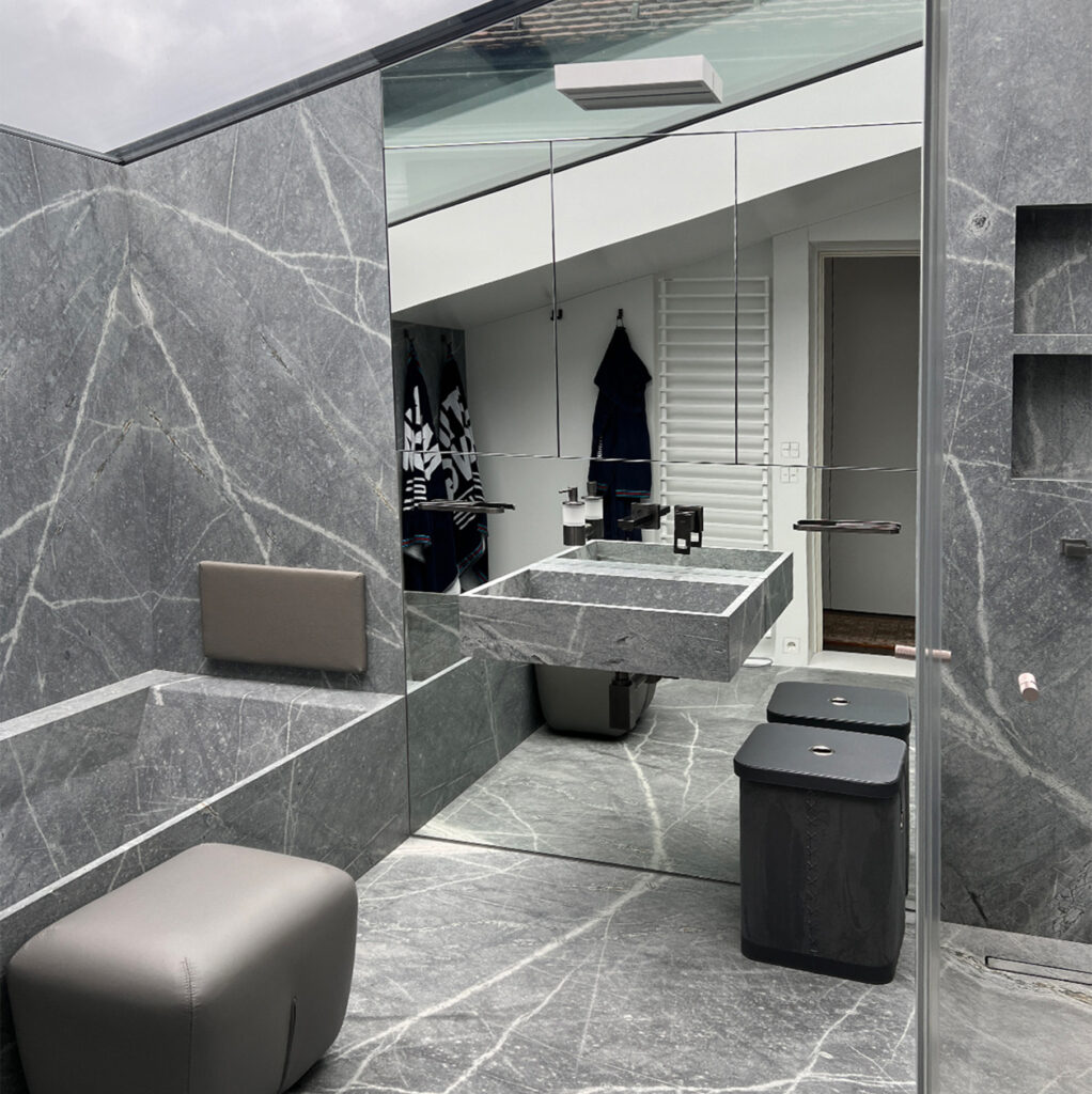 Jede Badewanne von Dolomit Stone entsteht individuell. Exakt nach Maß, abgestimmt auf Raum, Architektur und persönliche Wünsche. Ob puristisch, rund oder geometrisch – wir gestalten Ihre Naturstein-Badewanne so, dass sie sich harmonisch in Ihr Gesamtkonzept einfügt. Auf Wunsch kombinieren wir Ihre Wanne mit passenden Waschtischen, Duschwänden, Ablagen und Böden aus demselben Stein. So entsteht ein durchgängiges, exklusives Raumkonzept.