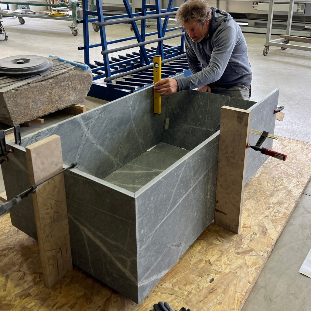 Jede Naturstein-Badewanne wird in mehreren Schritten gefertigt: